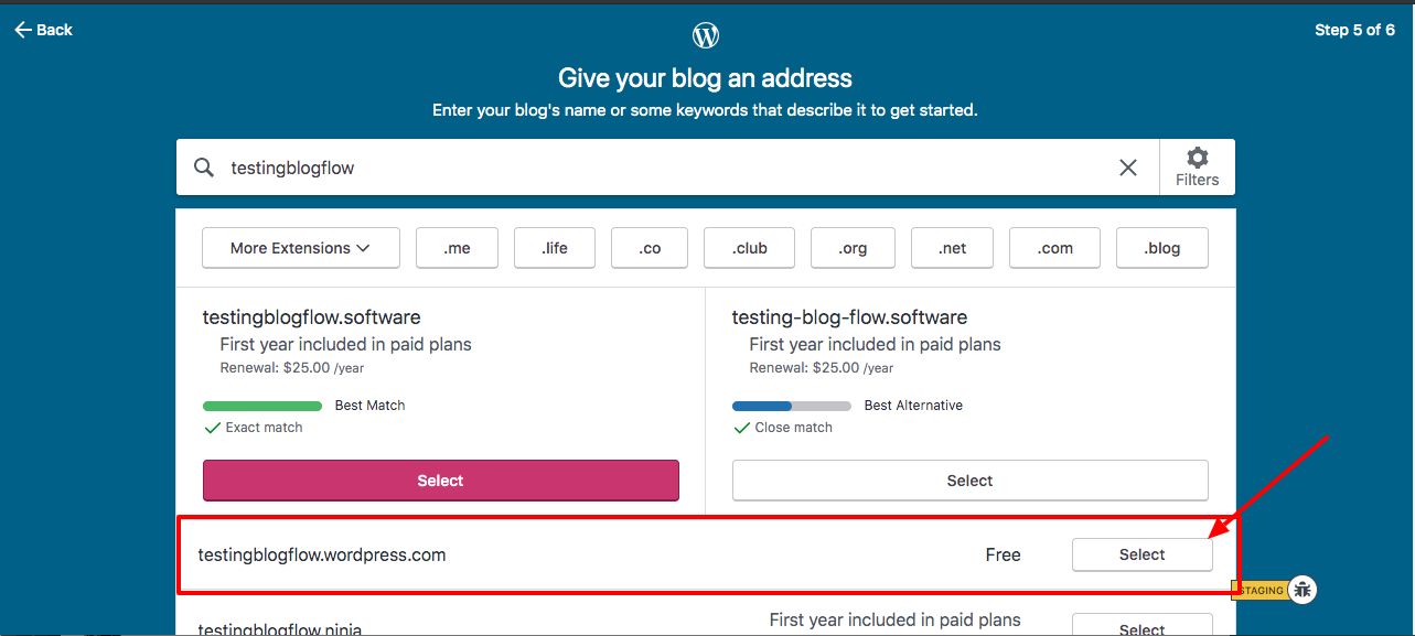 How do I setup a site with a free wordpress.com subdomain. For some reason I get to step 4 out of 5 and it is not an option
