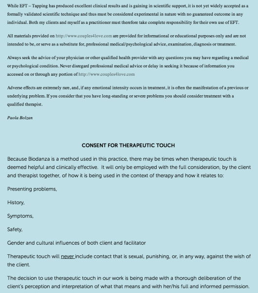 After the intro, the font changes when “CONSENT FOR THERAPEUTIC TOUCH” begins.
