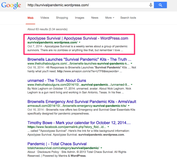So the real question is, how do you make Google understand that when someone searches for Survival Pandemic, that they should see your site instead of all these folks’ sites?