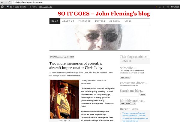 I was able to see your blog at http://thejohnfleming.wordpress.com/ as seen in the screenshot below:
