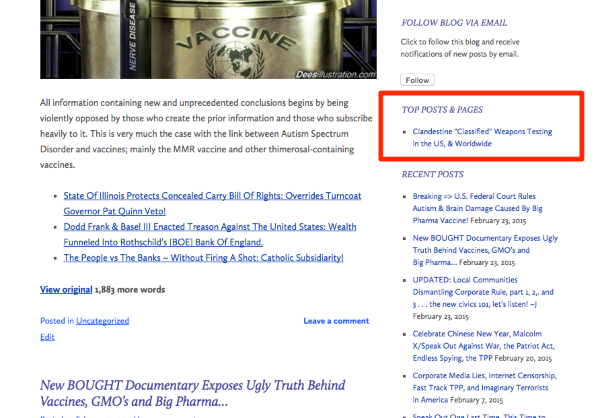 Just visited your site and saw one post listed in your Top Posts & Pages Widget: