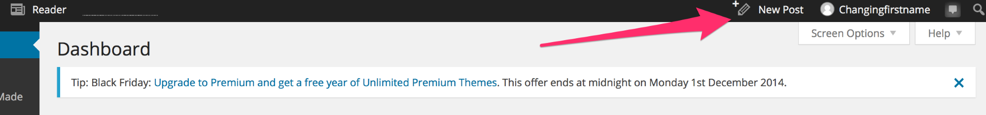 However, if you’re in your Dashboard, and want to go to the new editor, just click the new post button in your admin bar: