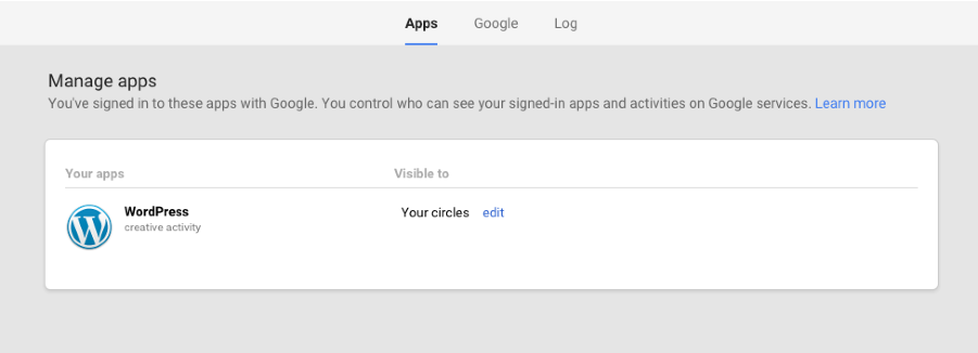You’ll see WordPress as one of your options under “Apps” and here you can adjust visibility so that everyone, not just your circles, can see it.
