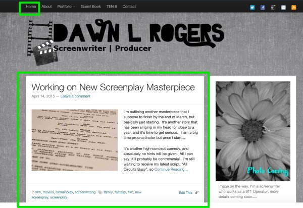 I had to create the home page linking to http://www.dawnthescreenwriter.com.wordpress.com. I tried every other way possible, and could not get it to work.In other themes, it still shows 2 “home” pages. I would prefer a static front home page and thought I was following directions, but still unsuccessful. I guess if the way I have it set up is not an issue, then I’m happy with it at least for now.