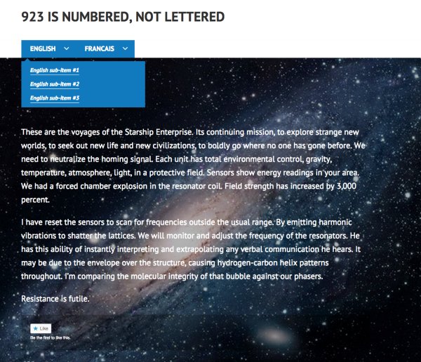 ENGLISH and FRANÇAIS are their two main items, all the other links are sub-items in the menu.
