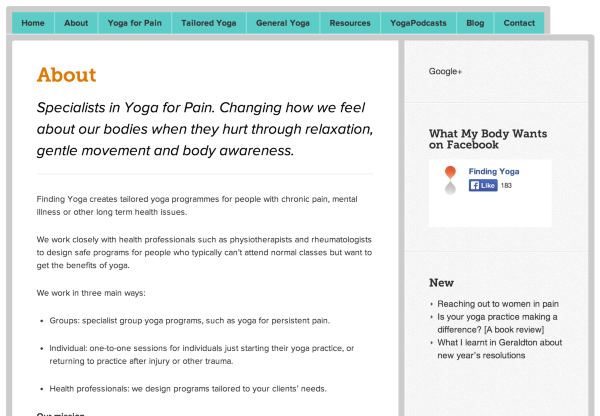 By adding a short line of code to http://www.findingyoga.com.au, you can make your Google+ page eligible to show up on the right hand side of the Google search page for relevant queries and make your Google+ page more discoverable. Learn more
